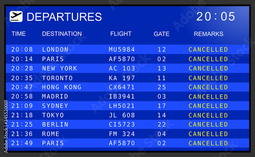 © sablin, Obraz premium Flight departures board. Cancelled flights