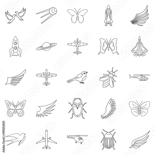 © ylivdesign, Fototapeta premium Flight on wing icons set, outline style