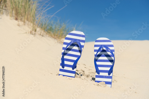 © Ivonne Wierink, Obraz premium flip flops in sand