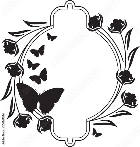 Obraz premium Fllower frame with butterflies silhouettes