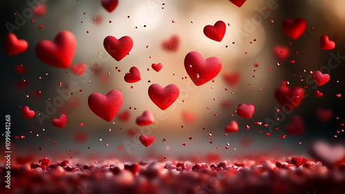 © chocoloki, Obraz premium floating and falling red hearts on a dark background