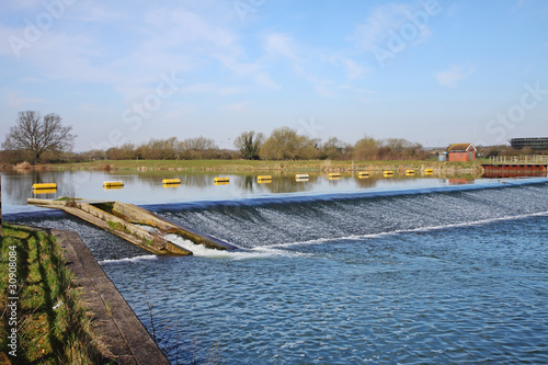 © Chris Lofty, Naklejka premium Floating Barrier on a tranquil blue River