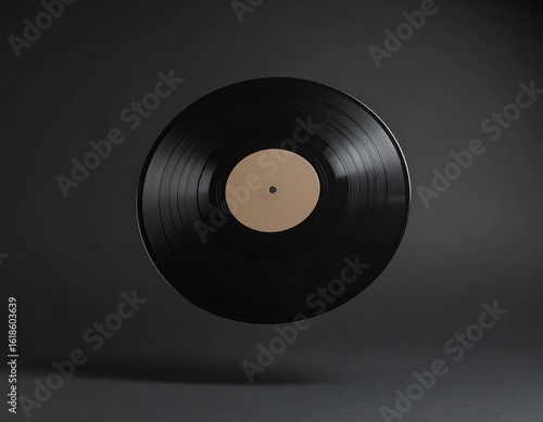 © Sirotol, Fototapeta premium Floating black vinyl record on dark background