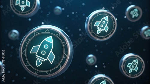 Fototapeta premium Floating Blockchain Icons in Microgravity Environment, Standard V2