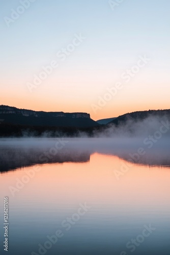 © Goncharenko, Fototapeta premium Floating Boat on Calm Lake