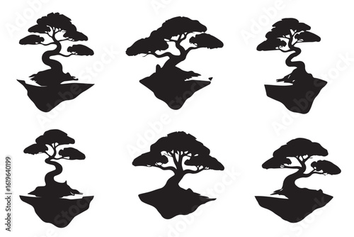 Naklejka premium "Floating Bonsai Tree Silhouettes Collection"