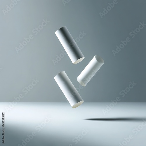 © UKPixelCraft, Fototapeta premium Floating chalk pieces still life shot on white background