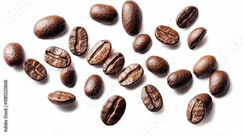 © Tikic, Fototapeta premium Floating Coffee Beans on White