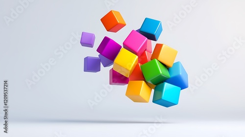 © kamsudin, Obraz premium Floating Colorful Cubes Abstract Background