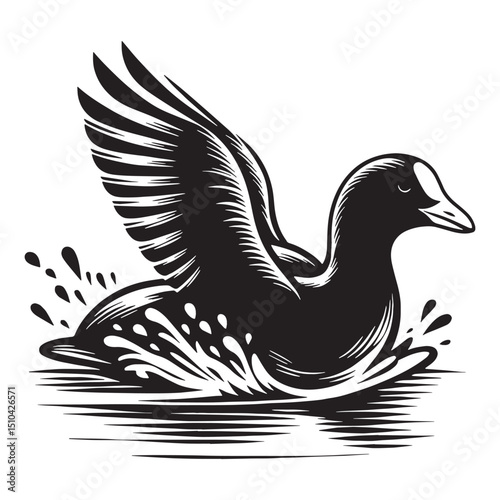 Obraz premium Floating Coot silhouette with sleek form – Coot illustration – Minimalist...