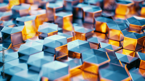 © Aina Tahir, Obraz premium Floating 3D hexagonal prisms arranged in a honeycomb pattern.