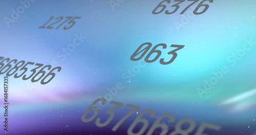 Fototapeta premium Floating 3D numeric characters drifting in digital data space, with codes 063 1275 6376 6685566