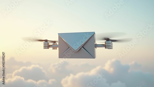 © nucotaro, Fototapeta premium Floating Envelope on Neutral Background
