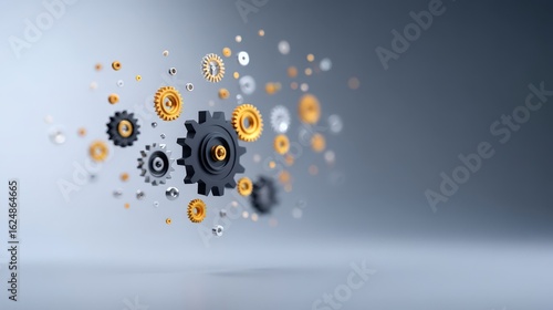 © Sangsung, Obraz premium Floating Gears in Motion with Metallic Elements and Soft Background