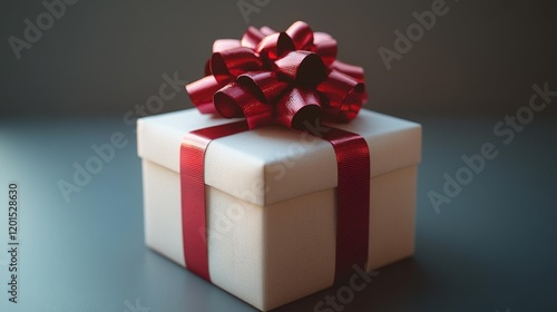 Fototapeta premium Floating Gift Box with Red Ribbon. Generative AI