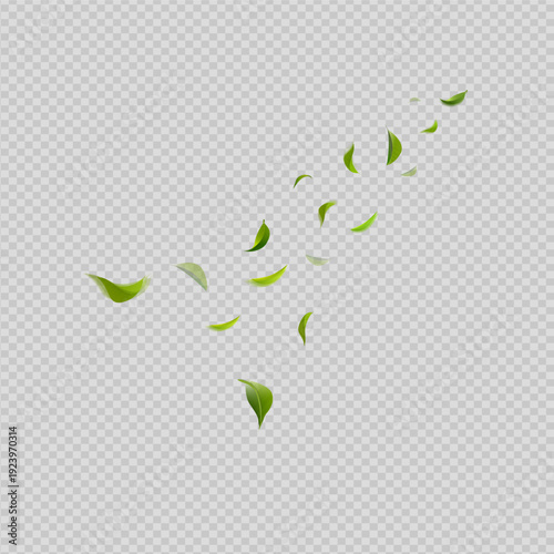 © escapejaja, Fototapeta premium Floating green leaves isolated on transparent background natural leaf vector illustration