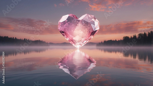 © Excalibur , Fototapeta premium Floating Heart Crystal with Soft Pink Clouds at Sunset