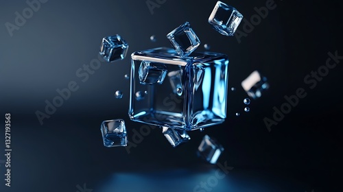 © Yuto, Naklejka premium Floating Ice Cubes: A Stunning 3D Render AI Generated