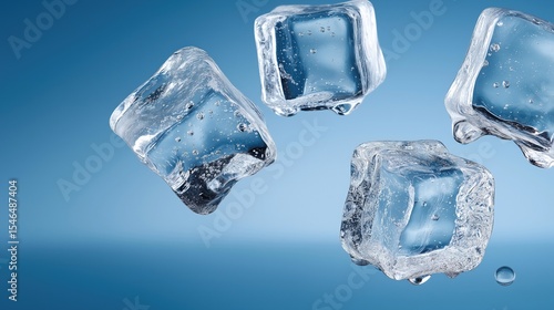 Obraz premium Floating ice cubes against blue background with water droplet detail