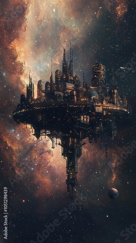 © Kitta Studio, Obraz premium Floating Imaginative City in Cosmic Space