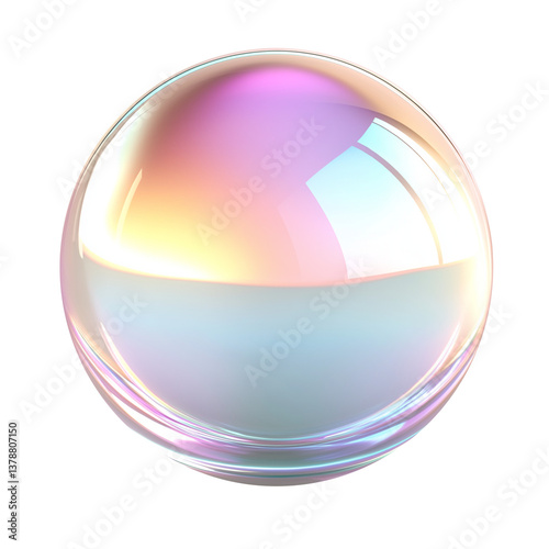 © Hunter, Obraz premium Floating iridescent sphere with colorful gradient light and glossy finish isolated on transparent background cutout