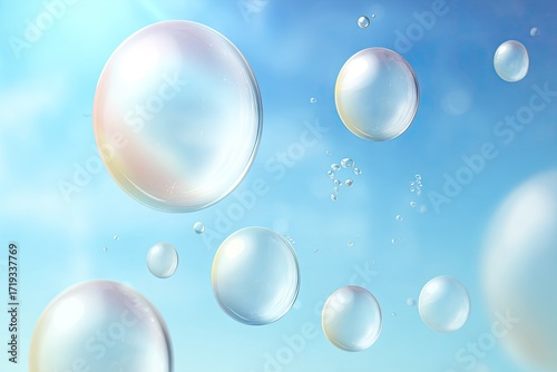 Obraz premium Floating, iridescent spheres against a soft, blue sky