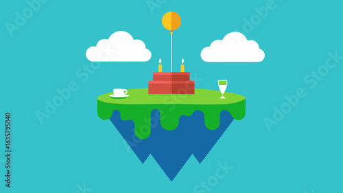 © sushanto, Obraz premium floating island birthday waterfall cake