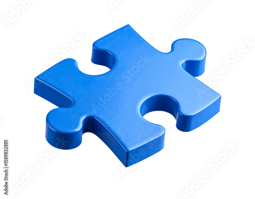 © Sujon Shah, Fototapeta premium Floating Isometric Blue 3D Puzzle Piece with Reflections and Light Gradient