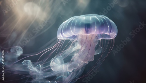 Naklejka premium Floating jellyfish depicted with flowing, transparent shapes in shades of...