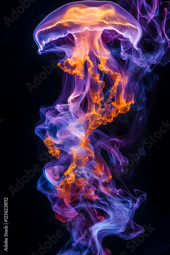 Obraz premium Floating jellyfish emits vibrant colors creating a stunning visual in dark...