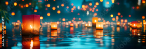 © queen, Obraz premium Floating Lanterns on Water - Illustration