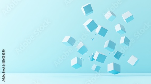 © abdul, Obraz premium Floating Light Blue Cubes Minimalist 3D Render Abstract Background