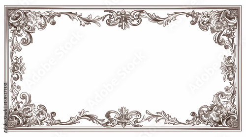 Fototapeta premium Floating Ornate Frame: Baroque Gold Hollow Center for Luxury Wall Art Mockup