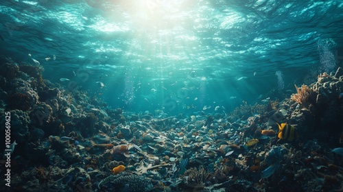 Fototapeta premium Floating Plastic Waste in Deep Ocean Waters