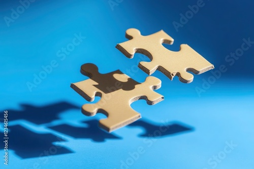 Obraz premium Floating puzzle pieces fitting together in mid-air, casting shadows, against...