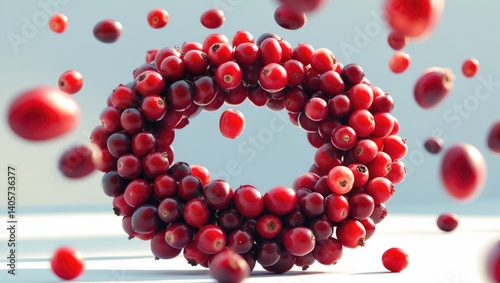 © NeuralNiche, Obraz premium Floating red cranberry berries on a backdrop