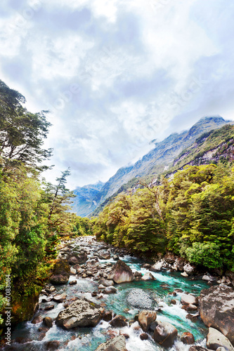 © thakala, Obraz premium Floating river in the mountain valley