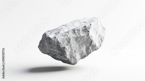 © ThatWorksMedia, Naklejka premium Floating Rock on White Background: A Minimalist 3D Render of Surreal Stone Art
