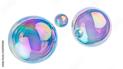 © Zulfiqar, Obraz premium Floating soap bubbles with iridescent colors, isolated on white background
