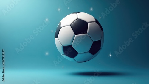 © CreativePulse, Obraz premium Floating Soccer Ball Classic Design Teal Background Sports Theme Championship