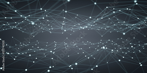 © sdecoret, Obraz premium Floating white and blue dot network 3D rendering
