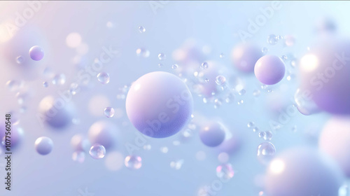 © marin, Obraz premium Floating white and purple granules with a light blue background granules appearing weightless and softly illuminated creating a sense of calm and serenity minimalistic a