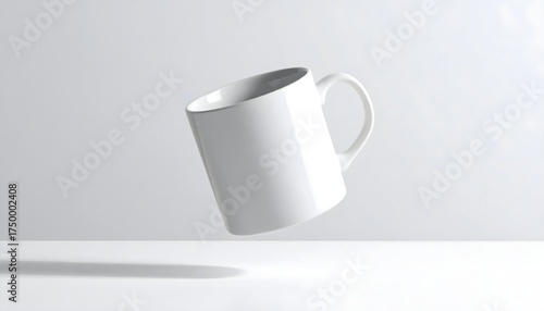Fototapeta premium Floating white coffee mug minimal background high resolution photo
