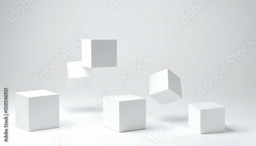 Obraz premium Floating White Cubes on White Background