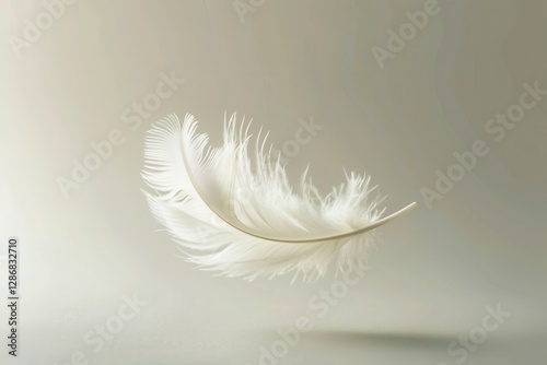 © Armir, Fototapeta premium Floating white feather on clean background minimalist aesthetic studio view