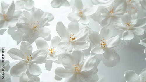 © suldev, Obraz premium Floating White Flowers on white Background