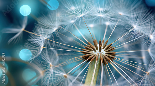 © Sascha, Obraz premium Floating Wishes: A Symphony of Dandelion Seeds. Generative AI