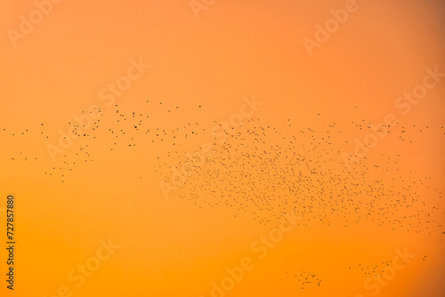 Obraz premium Flock of bird flying in the orange sky