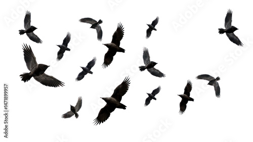 © Mohshena, Naklejka premium Flock of Birds Flying Isolated on Transparent Background