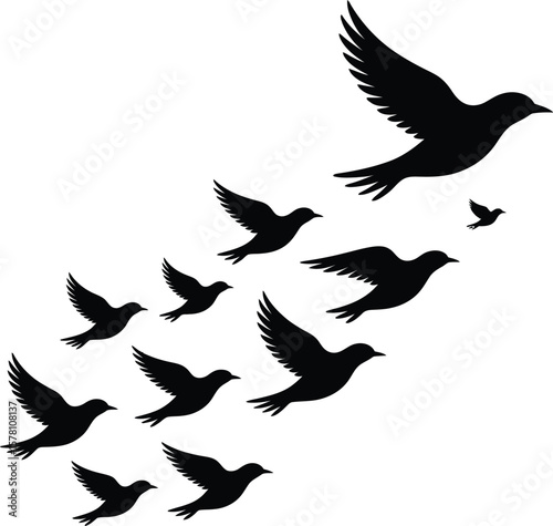 Obraz premium Flock of birds in flight flying silhouette